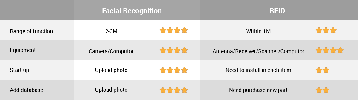 Comparsion of our "Anti-wandering system with Facial Recognition " to system using RFID
