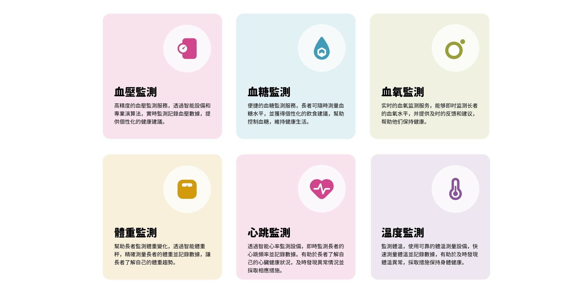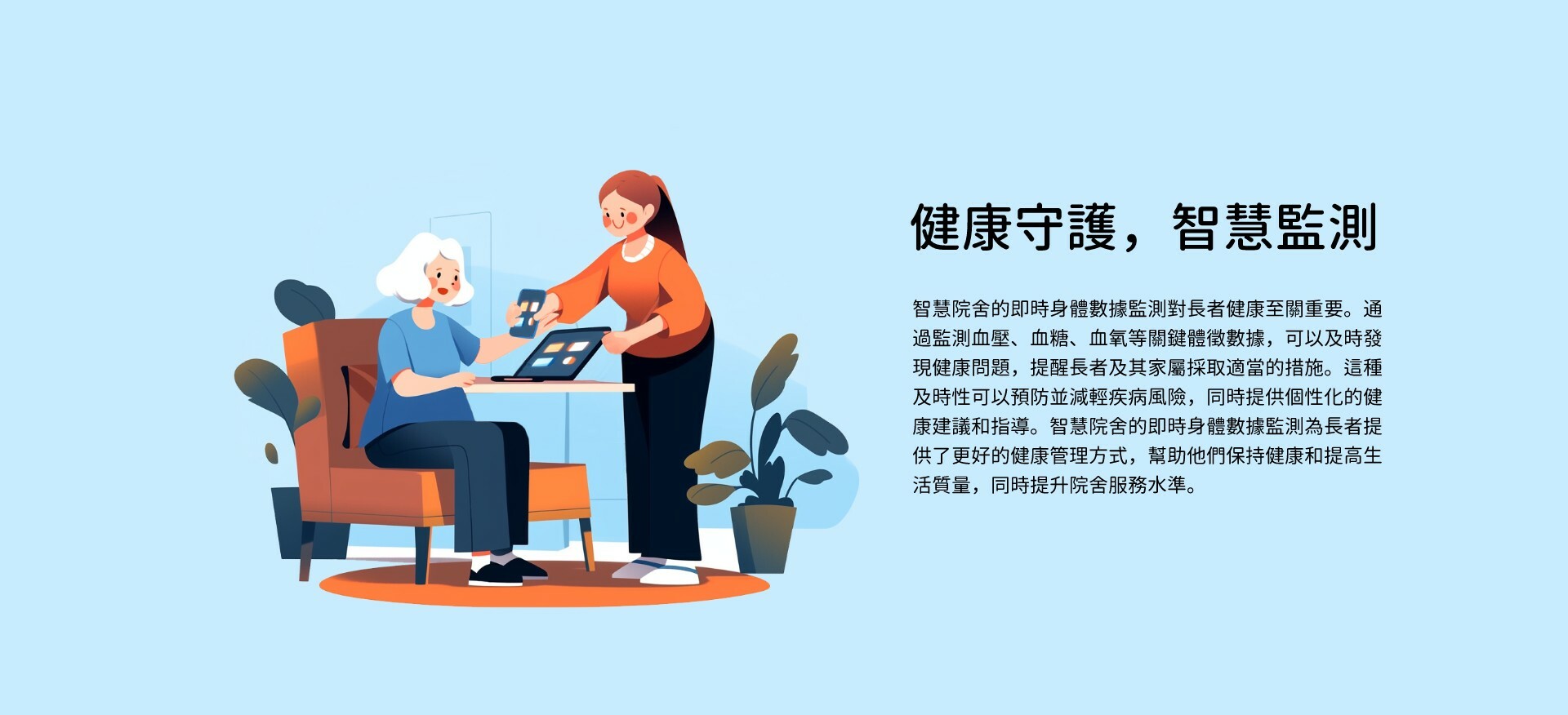 關愛長者健康,全面整合多種體征和測量數據,實時監測和分析心率血壓、體溫等健康指標,幫助長者了解身體狀況,進行個性化健康管理,讓長者隨時掌握健康動態,享受智能化健康關懷。